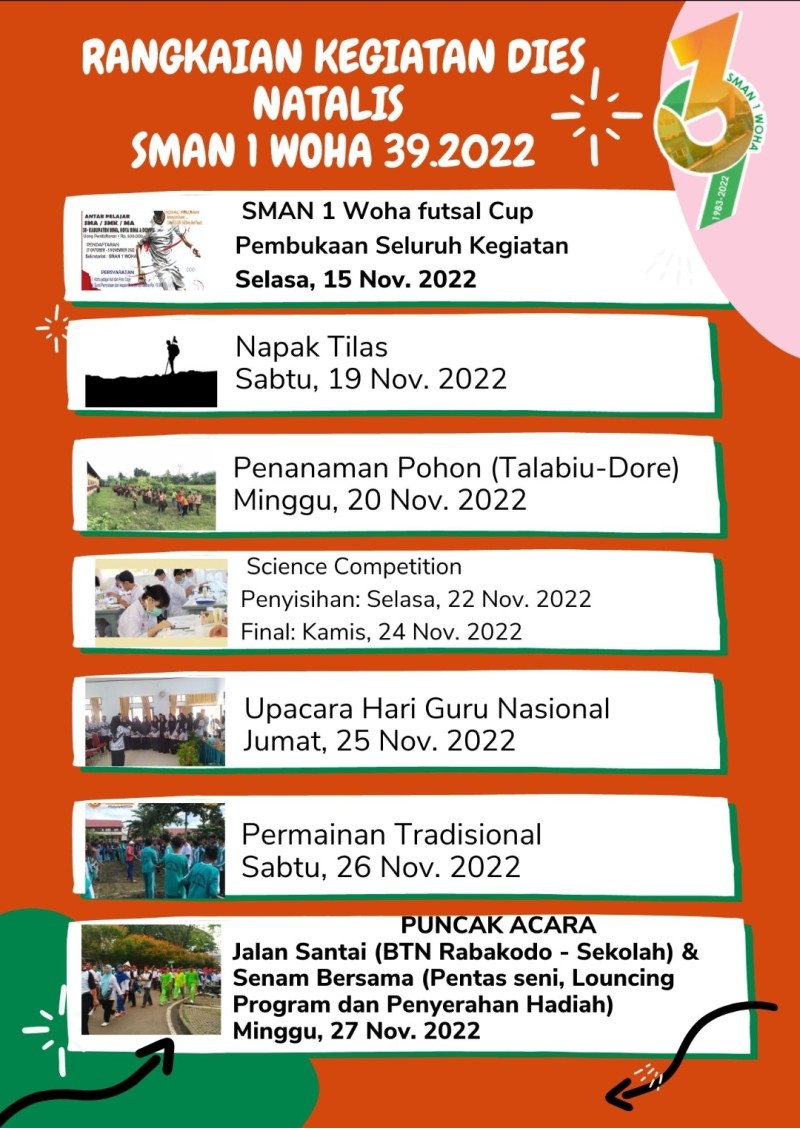 Berikut adalah rangkaian kegiatan Dies Natalis SMAN 1 Woha ke 39 tahun 2022.
