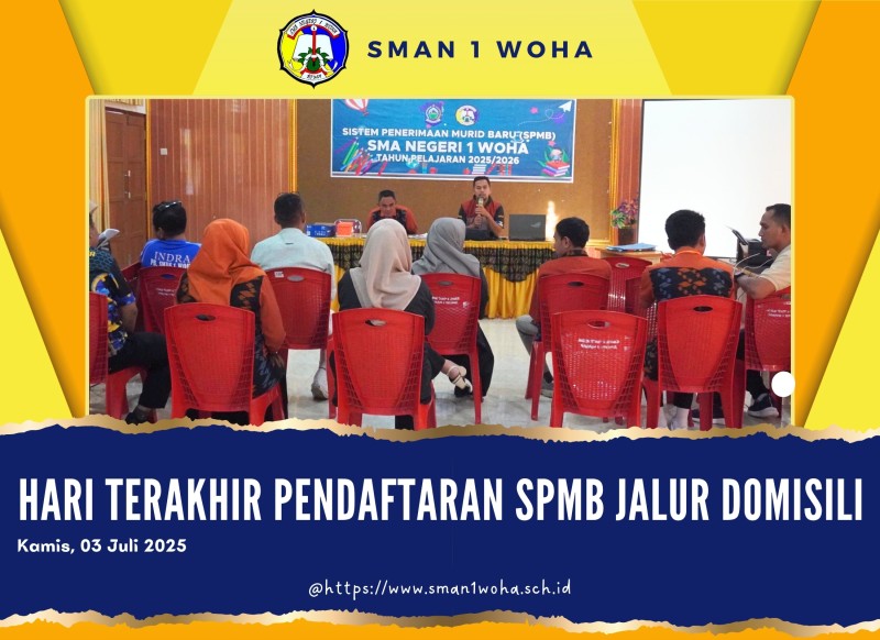 HARI TERAKHIR PENDAFTARAN SPMB JALUR DOMISILI SMAN 1 WOHA TAHUN 2025